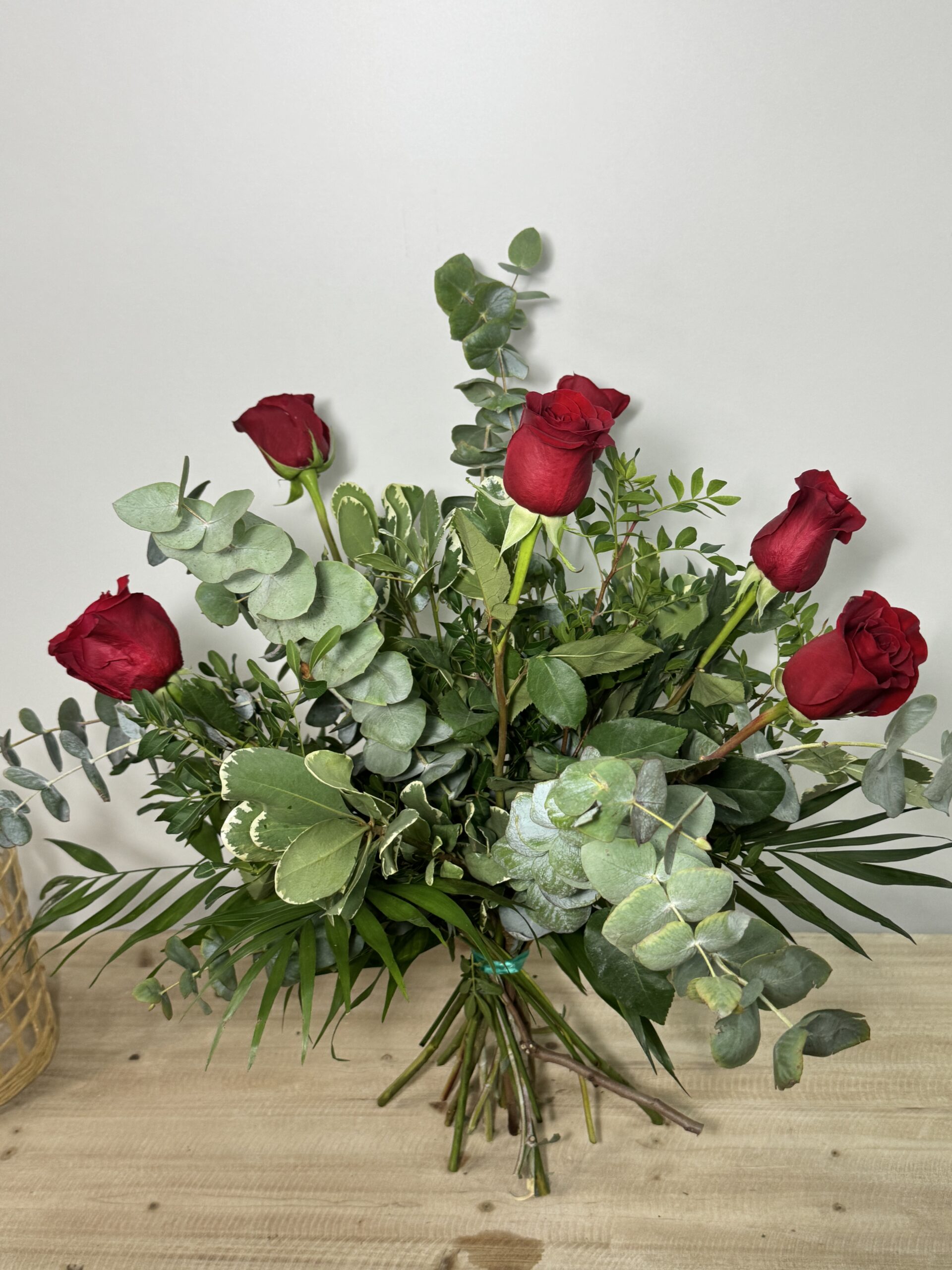 Nuestro producto es un hermoso ramo con 6 rosas rojas, simbolizando el amor y la pasión intensa. Cada rosa ha sido seleccionada cuidadosamente por su belleza y frescura, y el ramo está elegantemente arreglado para resaltar la belleza de cada flor. Las rosas rojas son un clásico atemporal que expresan emociones profundas y sinceras. Este ramo es ideal para regalar en ocasiones especiales como aniversarios, San Valentín o para transmitir un mensaje de amor y admiración a alguien importante en tu vida. Celebra el amor y la pasión con nuestro cautivador ramo de 6 rosas rojas.